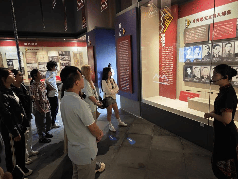 第二天,同学们走进了五指山市,通过对海南省民族博物馆(五指山市)的学习,较为深入地了解了黎族人民的基本分布情况、生产生活状况及文化信仰等。在民族博物馆调研学习过程中,元志东老师既从四大板块的内容上进行了分析,还从展品空间布置、应用场景设计等方面对同学们进行了指导。之后,同学们又在水满乡参观了莺哥景红茶园山庄,观摩学习了当地独具特色的红茶文化。