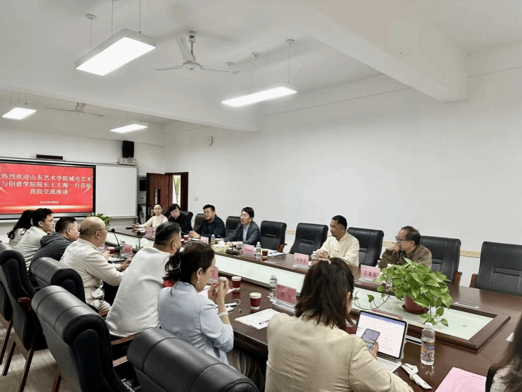 3月6日上午,山东艺术学院城市艺术与创意学院院长王大海、美育研究院院长李军以及部分企业代表到学院交流座谈,双方围绕专业建设、课程建设、美育服务社会及校企联动等议题展开深入探讨。350vip浦京集团官网院长郑立波、副院长周琳琳、元志东,教研办主任王春嵩及各系主任、相关教师等出席会议。