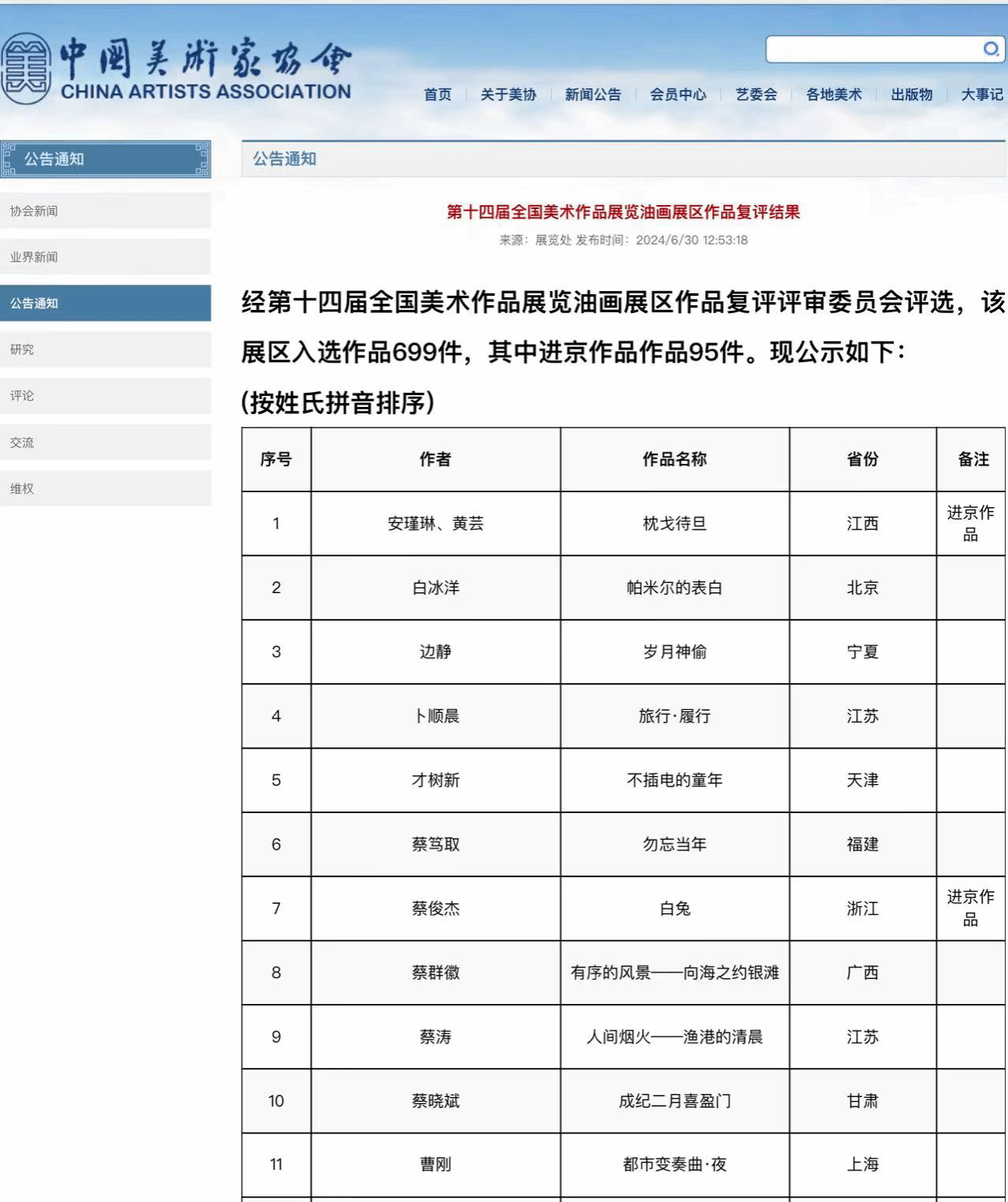 “全国美术作品展览”创办于1949年,至今已经成功举办13届,创办至今推出了一大批美术人才和美术精品,在新中国美术史上具有重要地位,为推动新中国美术事业繁荣发展发挥了重要作用。李澎霖老师的油画作品入选,体现了浦京集团官网教师在绘画创作方面的较高艺术水准和专业水平,将对浦京集团官网相关专业建设与高质量发展起到积极的影响与带动作用。