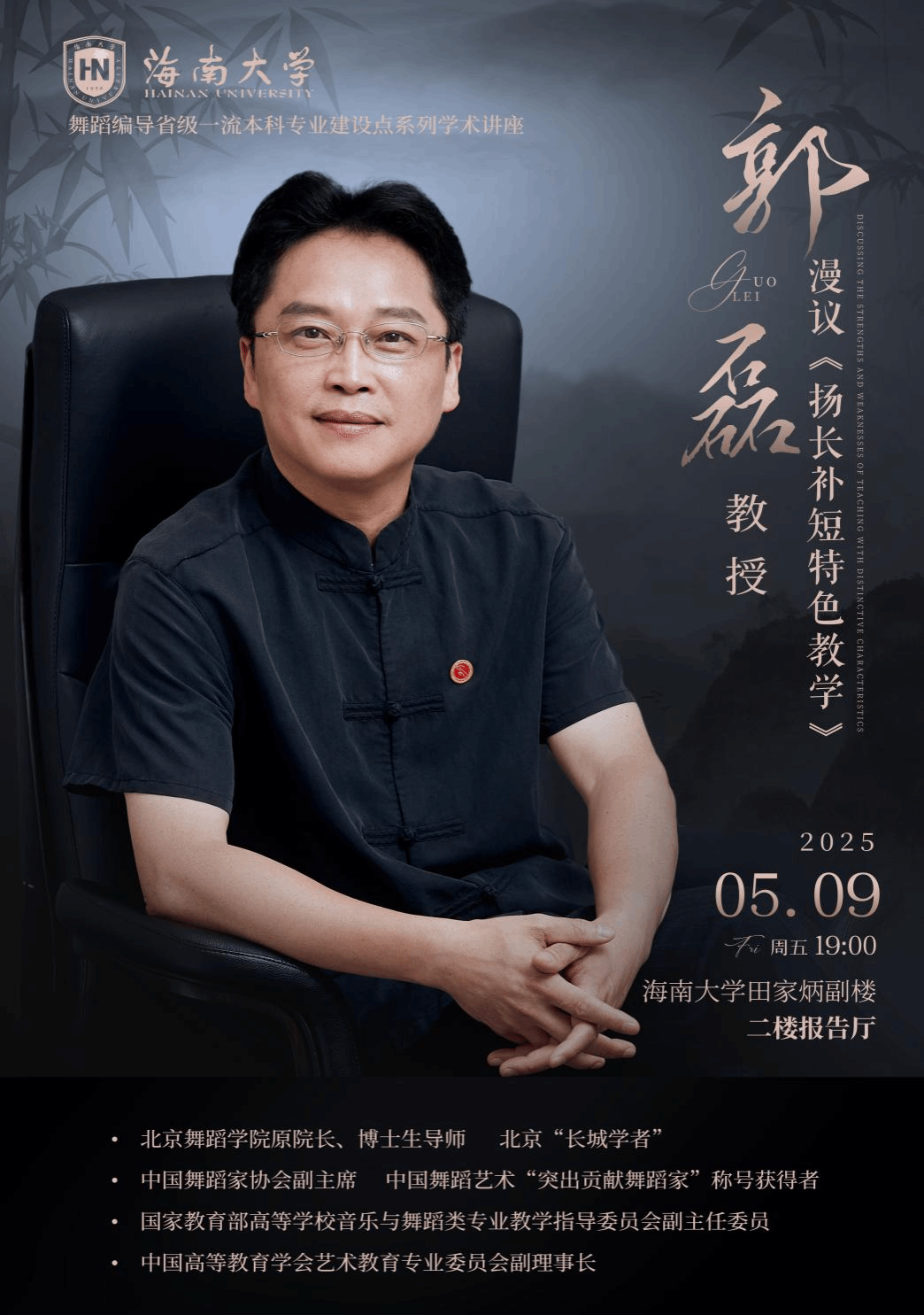 5月9日19:00,浦京集团官网舞蹈系举办舞蹈编导省级一流本科专业建设点系列学术讲座——《扬长补短特色教学》,特邀北京舞蹈学院原院长、博士生导师郭磊教授主讲。活动由舞蹈系教师杨小强主持。