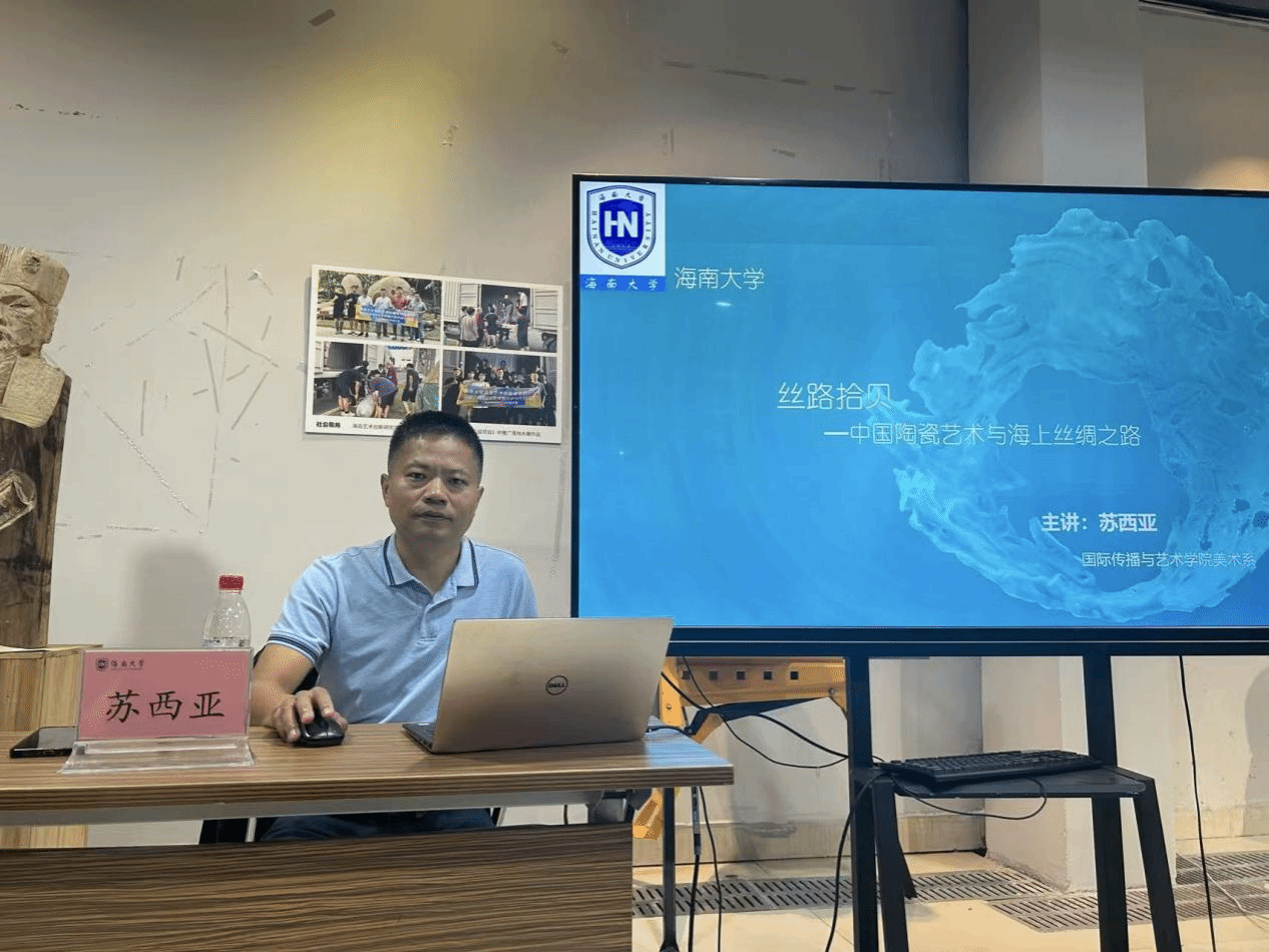 讲座过程中,苏西亚博士以“黑石号”“西北陆坡1号”沉船考古发现为切入点,将研究重点聚焦于南海海域出土的陶瓷遗存,并将其与“南海更路簿”中记载的古代航线进行精准印证。通过对比海南沿海遗址出土的青瓷、白瓷残片与海上丝路沿线地区发现的同类器物,苏西亚博士指出,南海不仅是古代陶瓷贸易的“黄金水道”,更是“南海更路簿”所代表的闯海人智慧与陶瓷艺术美学交融的核心场域——中国陶瓷循着“南海更路簿”指引的航线远销海外,而南海独特的海洋文化也通过陶瓷纹饰、器型设计等载体融入艺术创作,成为见证古代跨文明交流的“活化石”。