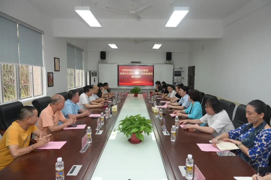 5月30日上午,省文联作协党组书记、省文联主席夏斐一行到350vip浦京集团官网调研。观看2024届美术系本科毕业作品展,并与学院美术、音乐、舞蹈系艺术家代表座谈。学院党委书记何映敏、院长郑立波、副院长袁琳陪同。