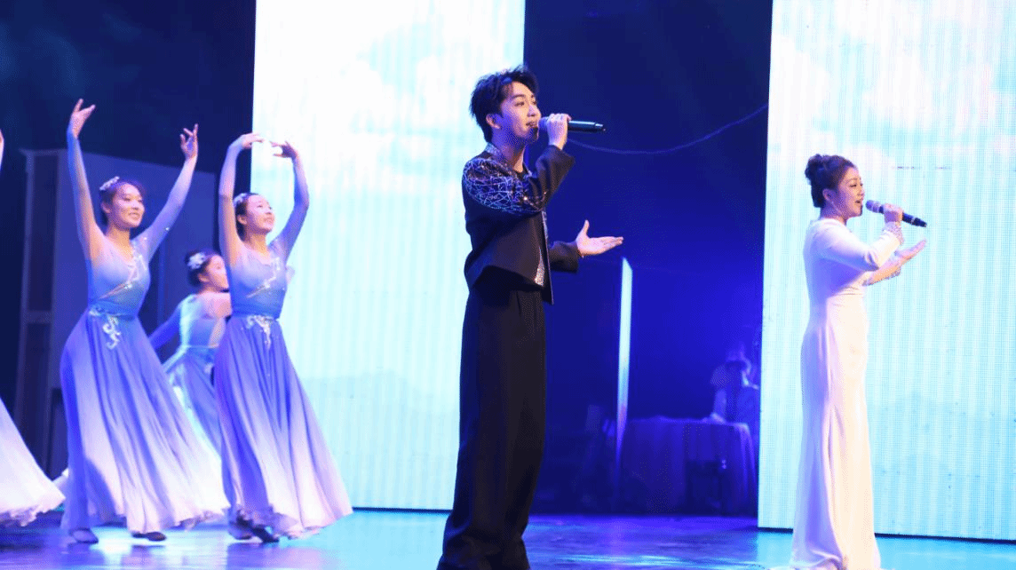 12月31日晚上,350vip浦京集团官网举办2025新年晚会。这是歌曲《梦起蔚蓝》。黄若涵 摄