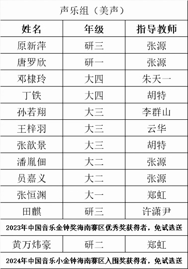 据悉,除声乐组外,本次金钟奖校级选送工作还涉及钢琴、器乐专业组别。浦京集团官网音乐专业协同备战,共选送声乐组学生23人,青年教师3人;钢琴组学生6人、青年教师3人;器乐组学生3人。