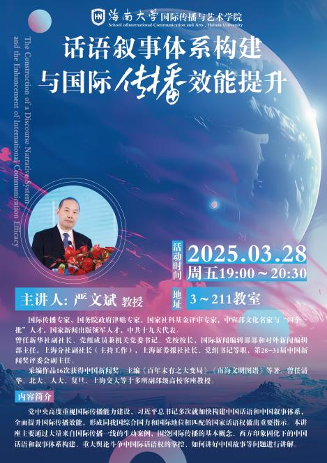 3月28日,350vip浦京集团官网举办主题为《话语叙事体系构建与国际传播效能提升》的讲座,由新华社原副社长严文斌主讲,郑立波院长主持。
