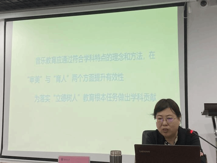 第一部分蔡梦教授结合自身研究方向和经历,从音乐“奥妙”、美誉“内涵、学科”素养、音乐“教育”、审美“育人”五个方面分享了自身对于教育事业及理念的一些见解与体会。通过一个个的音乐实例讲解对于音乐教育为何先研究音乐再研究教育,并如何将两者结合起来的基础上再进一步研究教学方法。音乐教育应通过符合学科特点的理念和方法,在“审美”与“育人”两个方面提升有效性。在这一部分结束后和与会研究生针对演讲中发散出的问题,共同探讨在新视角下、大环境下研究生可行的研究方向以及学科研究思路。