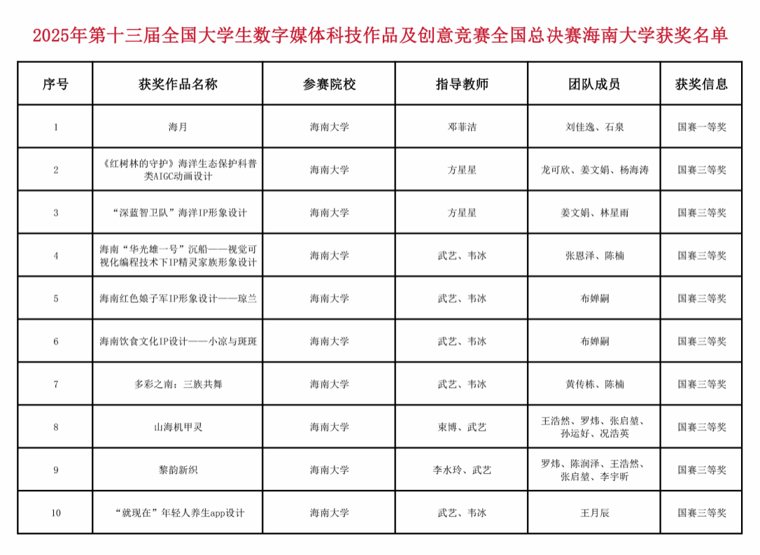 这些优异成绩的取得,不仅彰显了浦京集团官网在设计学领域的教学成果,也激发了师生参与高水平专业竞赛的信心和期待。未来,浦京集团官网将继续紧扣海南自贸港建设需求,为师生发展搭建更广阔的平台,推进院系学科交叉融合,努力培养具有国际视野的创新创意人才。