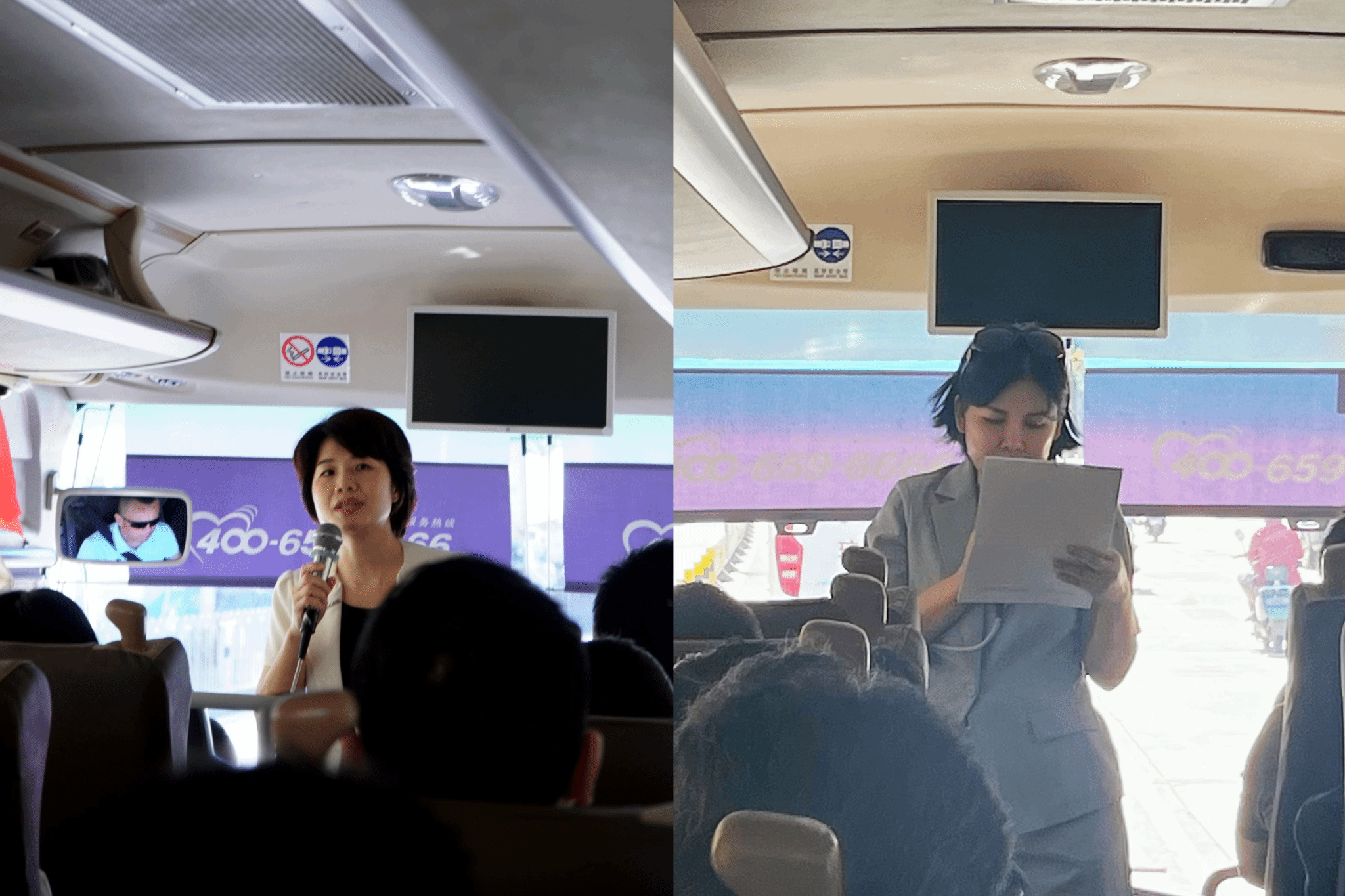 在车上,何映敏书记先简略介绍了王海萍烈士和海瑞的生平事迹,并向全体党员传达了《350vip浦京集团官网2024年二级党委(党总支)党建工作任务书》的文件精神。纪检委员许潇尹也给大家做了警示教育。