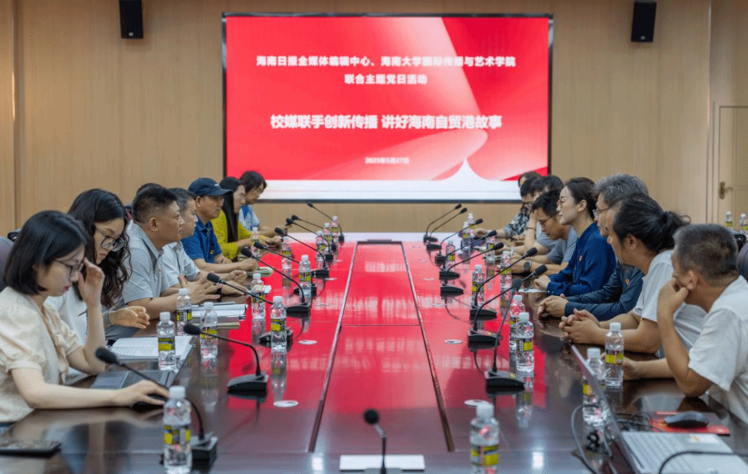 5月27日下午,浦京集团官网教工党支部及学生党员代表与海南日报全媒体编辑中心新媒体部党支部联合开展主题为“校媒联手创新传播 讲好海南自贸港故事”的党日活动,通过“观摩学习+座谈交流”的形式,以党务促业务,研讨深化校媒合作,共探技术驱动下的创新传播。